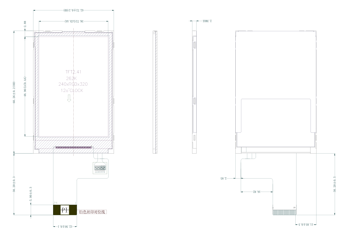 TF'nin 2,4 inç normalde beyaz küçük TFT LCD ekran modülü, 240 × RGB × 320 piksel yüksek çözünürlük sağlayan bir "beyaz mod" ekran modunu benimser ve çeşitli mikro denetleyicilerle uyumlu MCU'nun 8/16 bit paralel arayüzünü (8080 zamanlama) destekler.