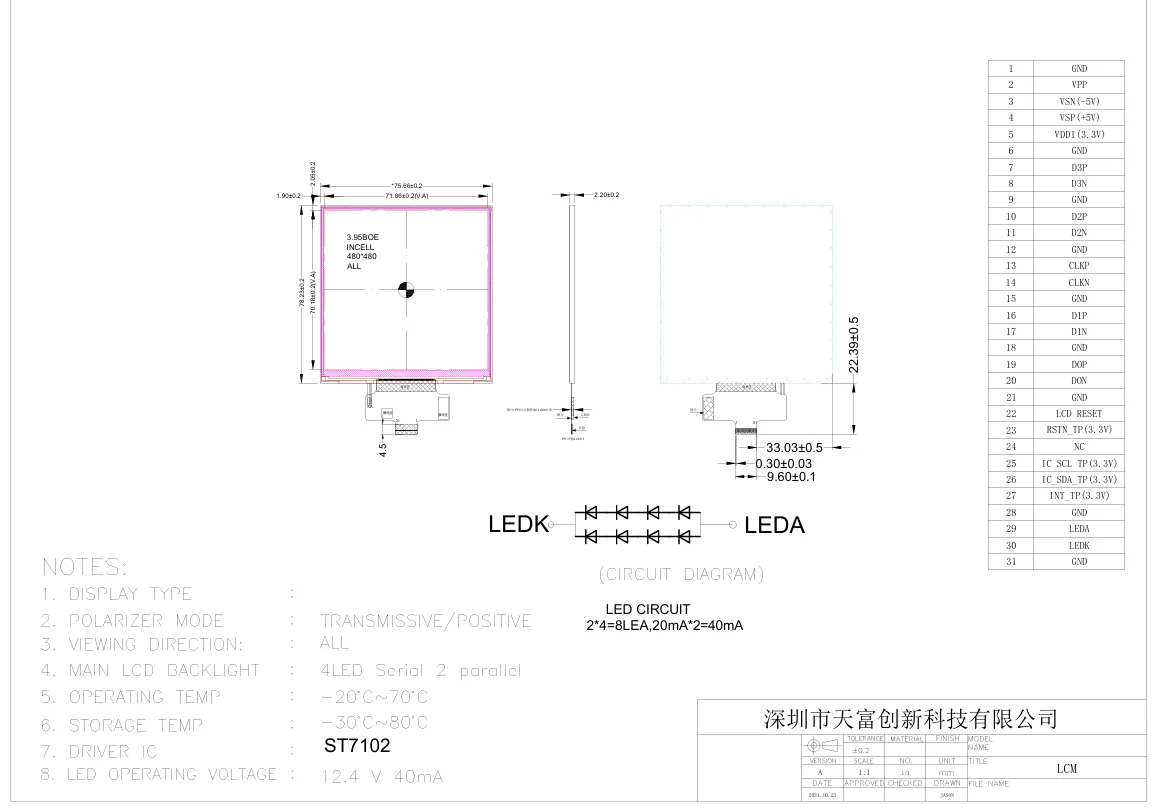 3,95 İnç Düşük Güçlü IPS İnce Hücre İçi Dokunmatik Ekran Modülü | Şeffaf, Dayanıklı ve Çok Yönlü! 480 x RGB x 480 çözünürlük ve ultra küçük 0,1462 mm piksel aralığıyla donatılan bu cihaz, 16,7 milyon gerçek renk, 1200:1 yüksek kontrast oranı ve 500 cd/m² parlaklığa sahip olup, hiçbir izleme açısından renk gölgesi olmayan canlı, net görüntüler sunar.